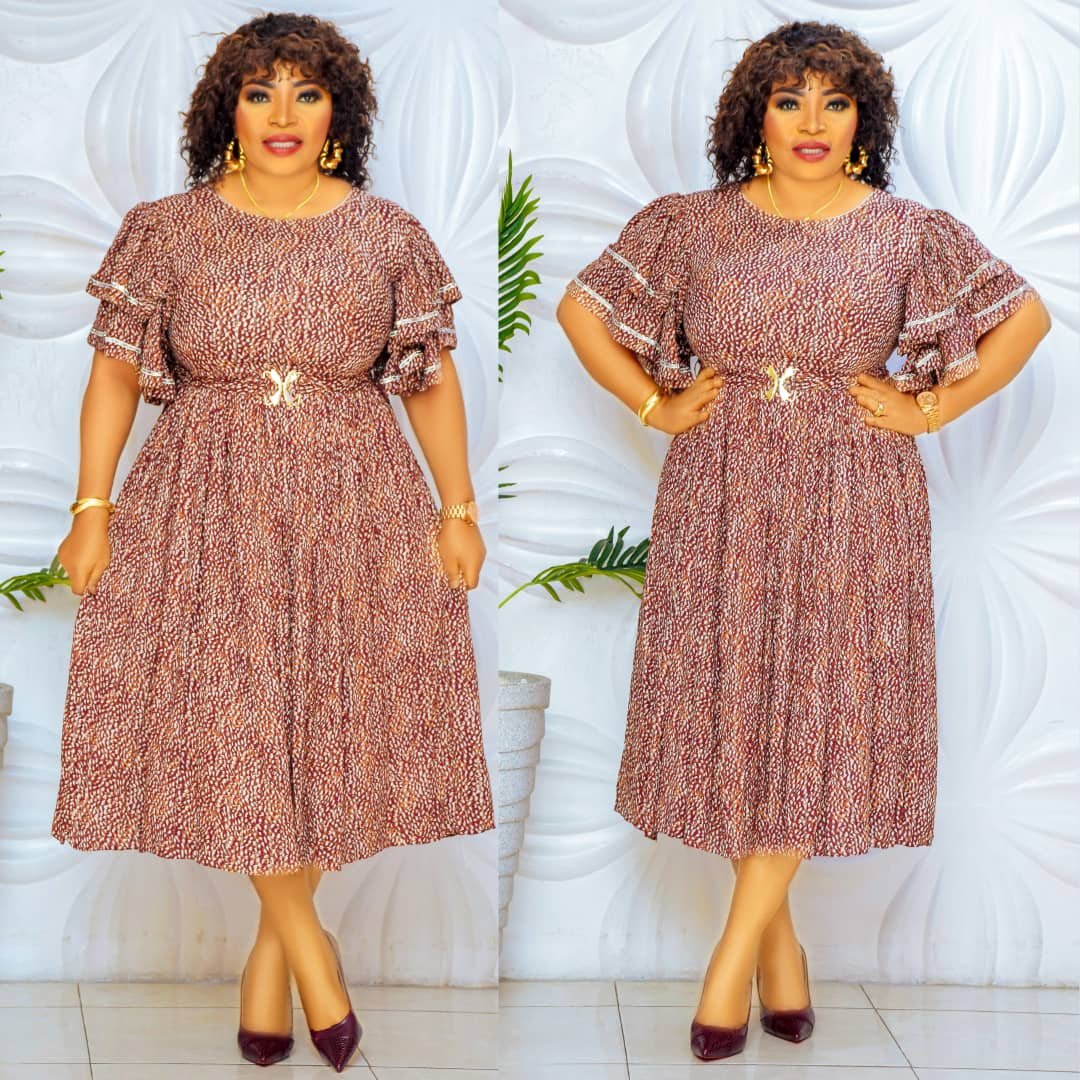 Step out in timeless elegance with this wine and cream printed midi dress. Featuring layered ruffle sleeves and a cinched waist with a stylish gold-tone belt accent, it’s perfect for both casual outings and special occasions.