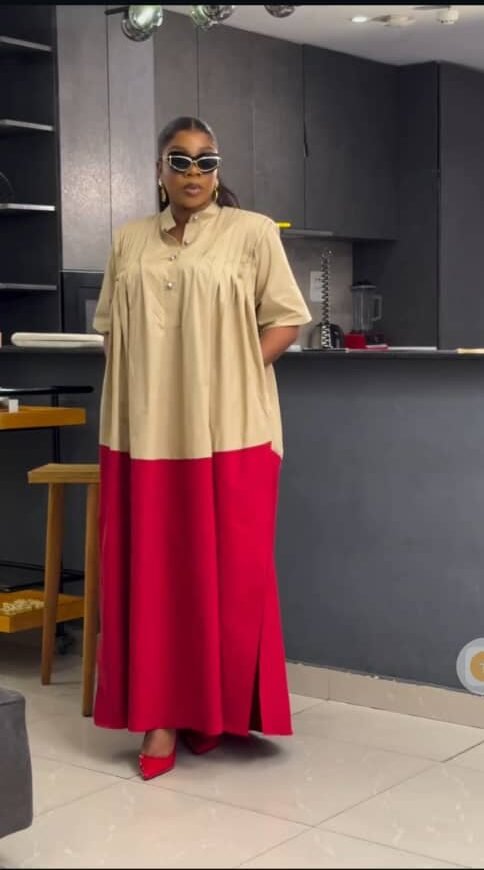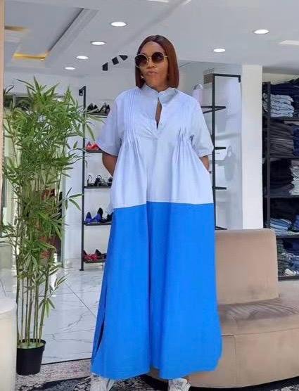 Stay effortlessly chic in this breezy two-tone maxi dress. Designed with a relaxed fit, keyhole neckline, and side slits for movement—perfect for casual outings, vacations, or warm-weather days.