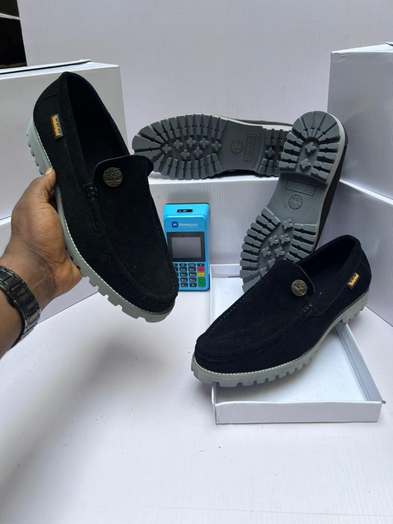 Elevate your casual wardrobe with these Timberland-style suede loafers, crafted in bold black with a durable grey sole. Designed for both comfort and grip, these loafers feature a rugged, anti-slip outsole perfect for urban strolls or light outdoor adventures. The soft suede upper and signature emblem button give it a classy yet tough appeal. Step out in confidence, wherever your day leads.